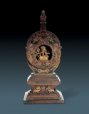 ÆÈ±æ»ó ¹®¾çÀ¸·Î Àå½ÄµÈ ž ¾È¿¡ ºÒÁ¤Á¸½Â¸ð(ÝÖð¢ðîãÙ½)°¡ ÀÚ¸®Çϰí ÀÖ´Ù. žÀÇ ±â´ÜºÎºÐ¿¡´Â µÎ ¸¶¸®ÀÇ ÇÏ¾á »çÀÚ°¡ žÀ» ¹Þµé°í ÀÖ´Ù. ÀÌ Èò »çÀÚ´Â ¼³»ê(àäߣ)¿¡¼ ½É¿ÀÇÑ ¸í»ó¿¡ Àá±â´Â °æÁö ³ôÀº ¼öÇàÀÚµéÀ» »ó¡Çϸç, ºÒ¹ýÀ» ¼öÈ£ÇÏ´Â º¸»ìÀ» »ó¡ÇÑ´Ù.