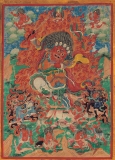 Ƽºª ºÒ±³¿¡¼´Â ¹«¼¿î ¼¼ ¾ß¸¸Å¸Ä«ÀÎ ¡®½ÅÁ¦¸»³«Á÷¼û(Shinje Jiksum)¡¯ ´Ù½Ã ¸»Çϸé Àû»ö ¾ß¸¶¸®(Yamari), Èæ»ö ¾ß¸¶¸®¿Í ¹ÙÁî¶ó¹ÙÀ̶ó¹Ù(Vajrabhairava) µîÀÌ ÀÖ´Ù. ÀÌ ±×¸²¿¡¼´Â ¾ÇÀ» ¹«Â´Â Àå¸éÀÌ »ýµ¿°¨ ÀÖ°í ¼»çÀûÀ¸·Î Ç¥ÇöµÇ¾î ÀÖÀ¸¸ç, ¾ß¸¶¸® À§¿¡ ÂÐÄ«ÆÄ°¡ ±×·ÁÁ® ÀÖ¾î °Ö·èÆÄÀÇ ÀÛǰÀ¸·Î º¸ÀδÙ.