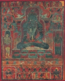 ¶Ç ±× ÁÖÀ§¿¡´Â õºÒ(ô¶ÝÖ)ÀÌ ¹¦»çµÇ¾î ÀÖ´Ù. º¸»ý¿©·¡ÀÇ Ç¥Çö¿¡¼ ÁÖ¸ñµÇ´Â Á¡Àº ¾ó±¼°ú ½Åü ±×¸®°í ¼Õ°ú ¹ß¹Ù´Ú¿¡ »¡°£»öÀ¸·Î Àå½ÄµÇ¾î Àִµ¥, À̰ÍÀº ±Ý°°è(ÑÑ˧ͣ) ´ëÀÏ¿©·¡(ÓÞìíåýÕÎ)ó·³ Ƽºª ÁߺÎÀÇ Â¯(Tsang) ¾ç½Ä ¶Ç´Â Ä«´ãÆÄ(Kadampa)½Ä ÀÓÀ» ¾Ë·ÁÁØ´Ù. ÀÌ ±×¸²Àº ¿ø·¡ ´Ù¸¥ ³× ¿©·¡°¡ ±×·ÁÁø ±×¸²°ú ¦À» ÀÌ·é´Ù.